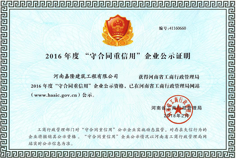 2016年度“守合同重信用”企業(yè)