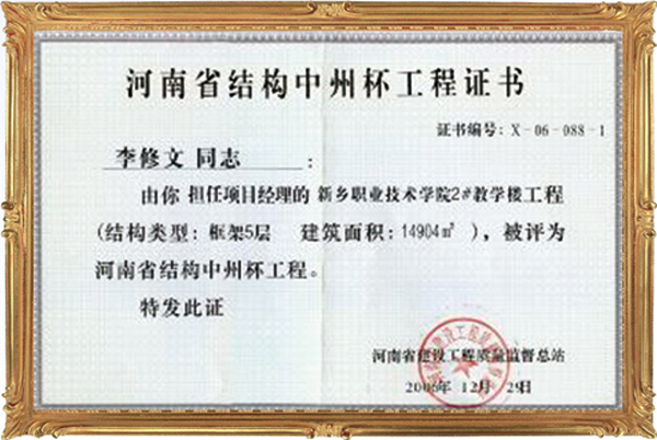 在發(fā)展的歷程中,河南嘉隆建筑工程有限公司不斷加強(qiáng)全面管理,注重提高自身素質(zhì),以合同的工期,優(yōu)良的質(zhì)量,滿意的服務(wù),贏得了信譽(yù),公司先后榮獲了新鄉(xiāng)市***單位、新鄉(xiāng)市***集體單位、新鄉(xiāng)市***企業(yè)、全國用戶滿意施工企業(yè)、全國**施工企業(yè)、新鄉(xiāng)市守信企業(yè)、新鄉(xiāng)市質(zhì)量效益型企業(yè)、新鄉(xiāng)市安全文明標(biāo)準(zhǔn)化工地、昆明春城杯等榮譽(yù)稱號。